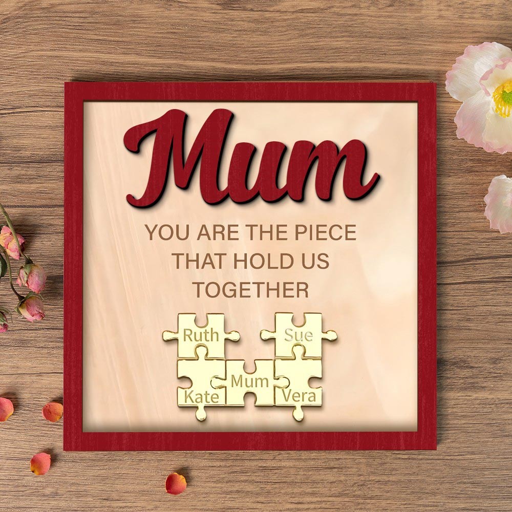 Personalised Mum You Are the Piece that Holds Us Together Puzzle Name Sign