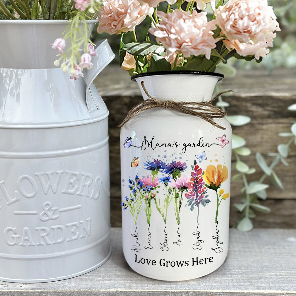 Personalised Nana's Garden Birth Flower Vase with Kids Names Keepsake Gifts Mother's Day Gift Ideas