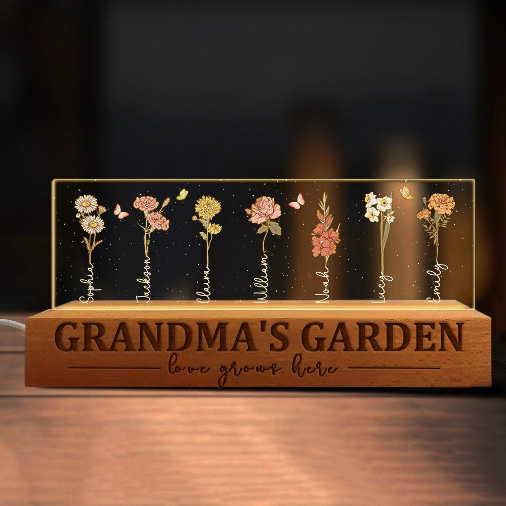 Personalised Nana's Garden Love Grows Here Birth Flower Wood Night Light Christmas Keepsake Gifts For Mum Grandma