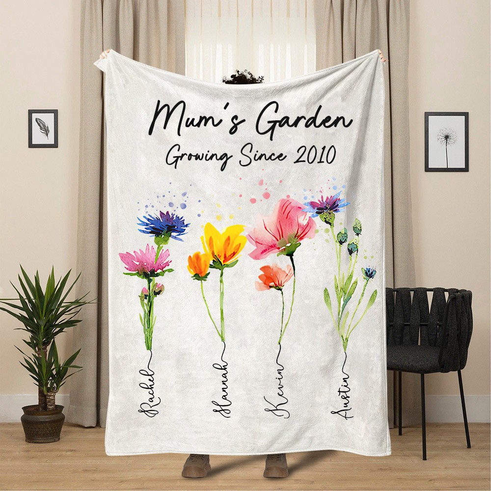 Personalised Nana's Birth Flower Blanket with Kids Names