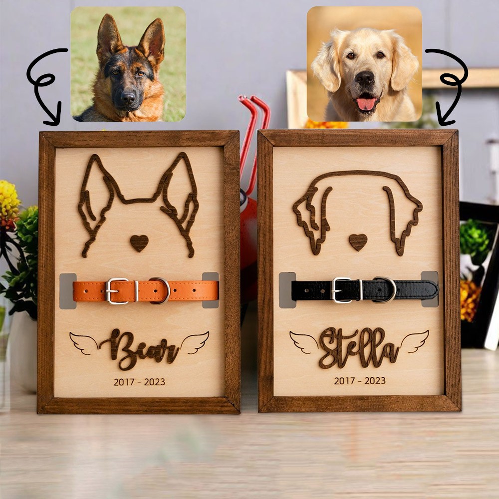 Personalised Pet Ear Outline Frame With Collar Holder Dog Loss Gift Keepsake Gift for Pet Lovers