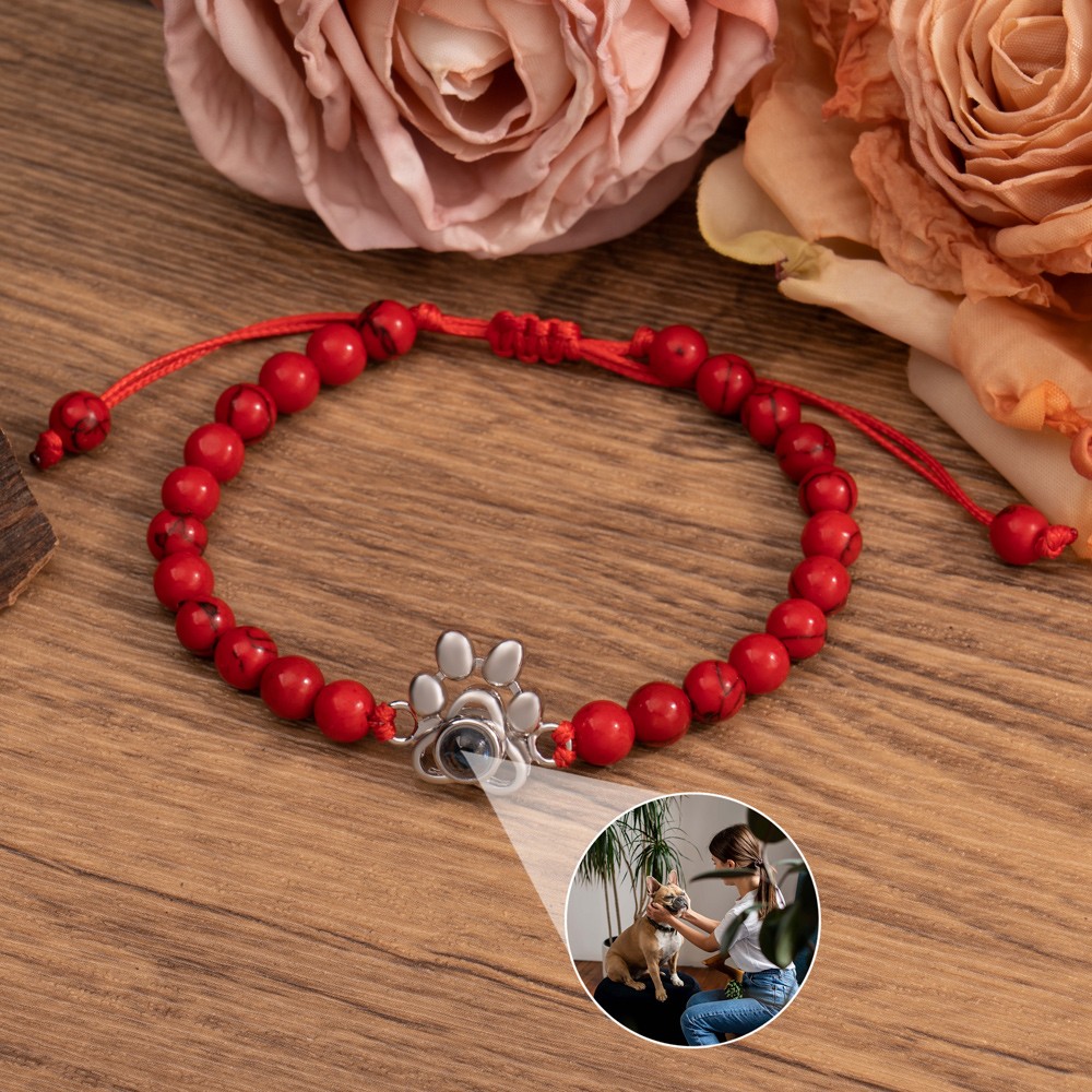 Personalised Pet Paw Photo Projection Beaded Bracelet with Picture Inside Unique Gifts For Pet Lover