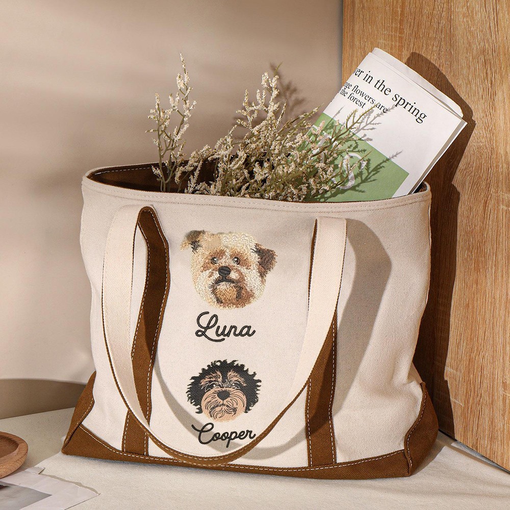 Personalised Pet Tote Bag Embroidered Dog Face Tote Bag from Photo for Dog Mum Pet Lovers Gifts