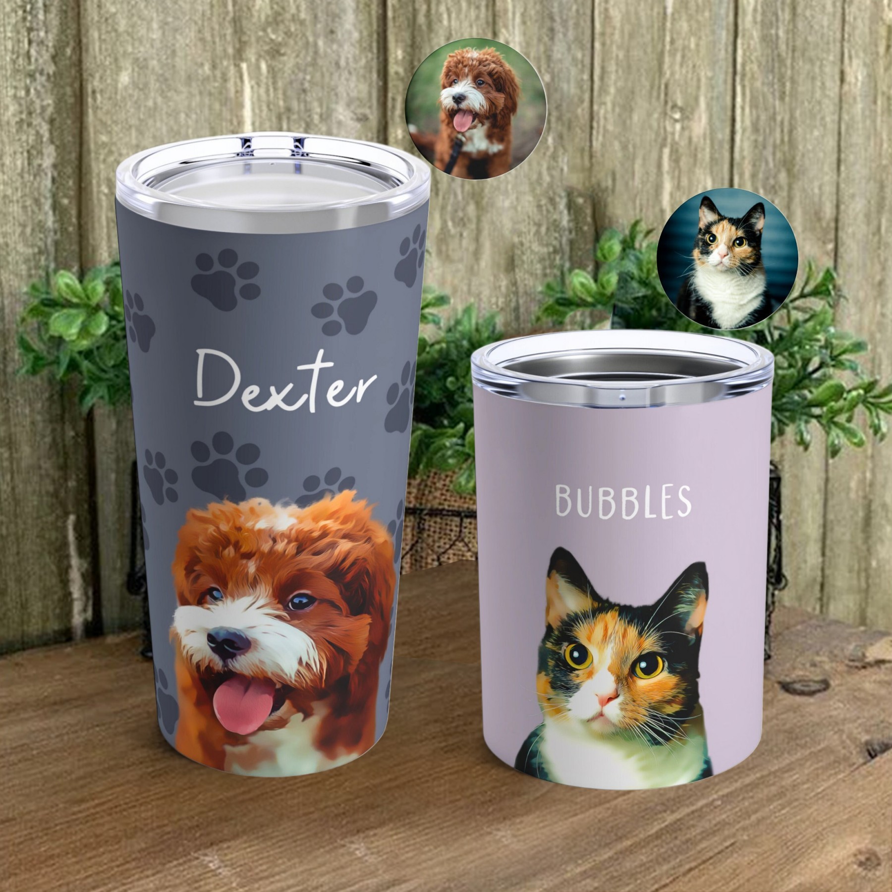 Personalised Pet Tumbler with Photo Portrait and Name Custom Gifts for Pet Lovers Memorial Gift for Dog Lovers