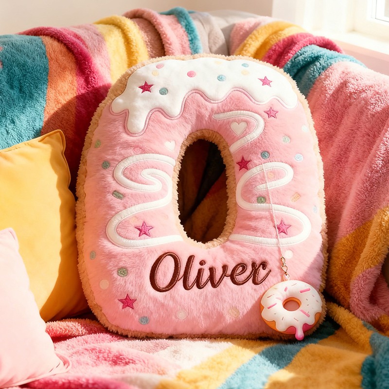 Personalised Pink Donuts Letter Pillow with Custom Name Christmas Gift for Girls