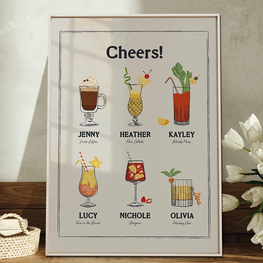 Personalised Roommates Drinks Art Print Frame with Names College Apartment Dorm Art Unique Gifts for Friends