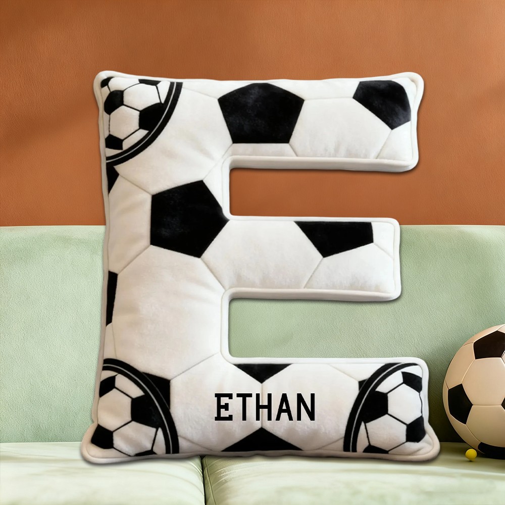 Personalised Soccer Themed Letter Shaped Pillow with Custom Name Football Fans Gifts Christmas Gift for Soccer Lover