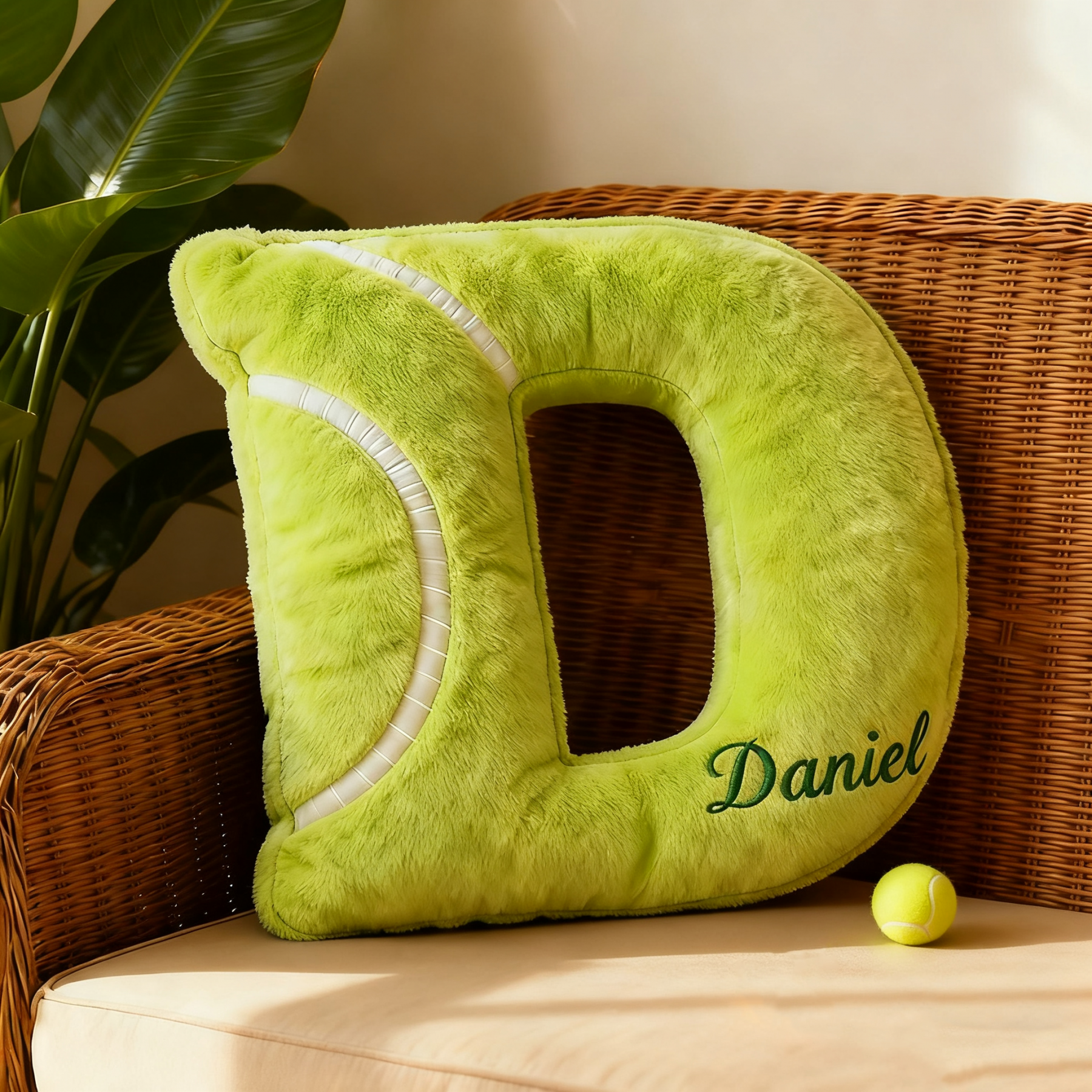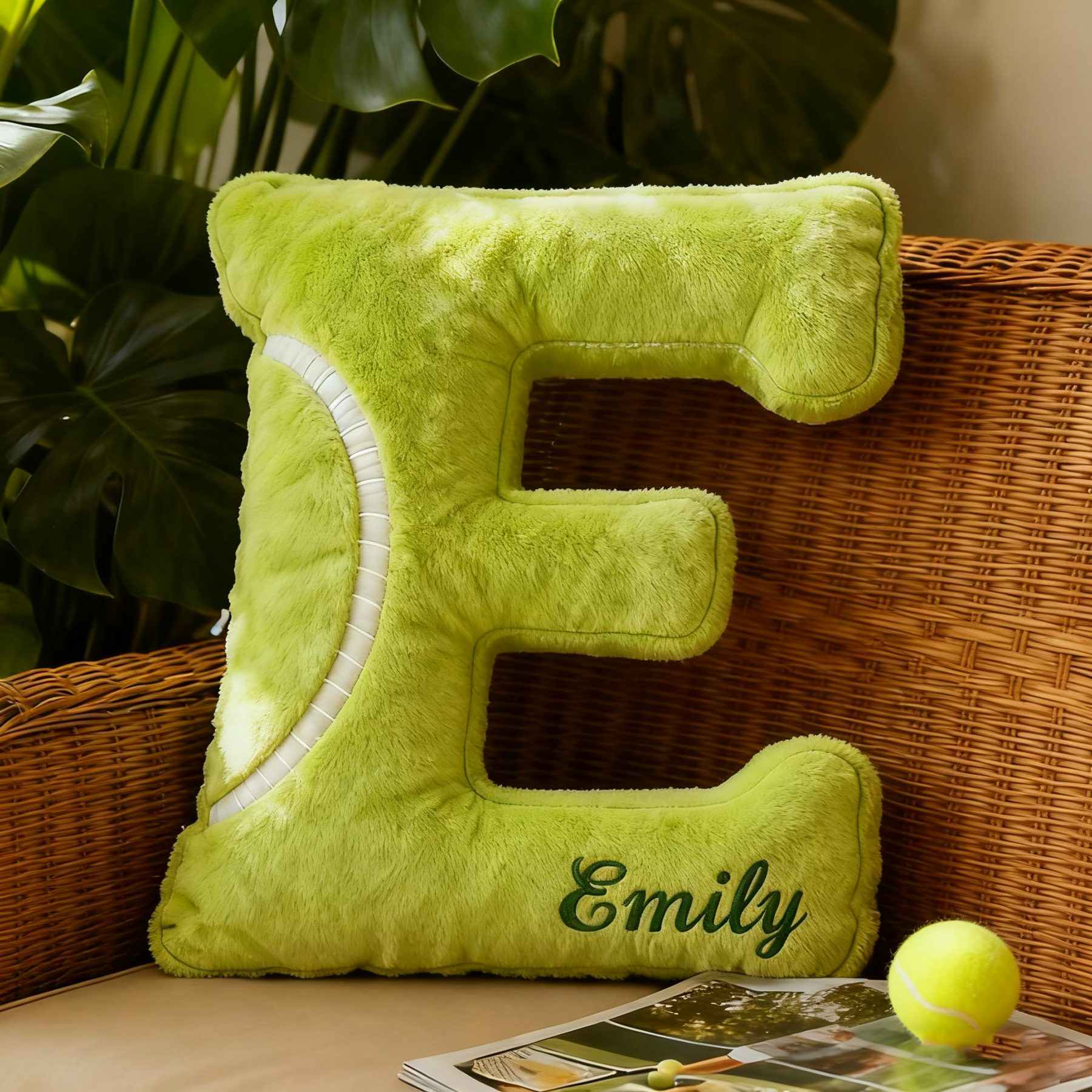 Personalised Tennis Themed Letter Shaped Pillow with Custom Name Tennis Fans Gifts Christmas Gift for Tennis Lover