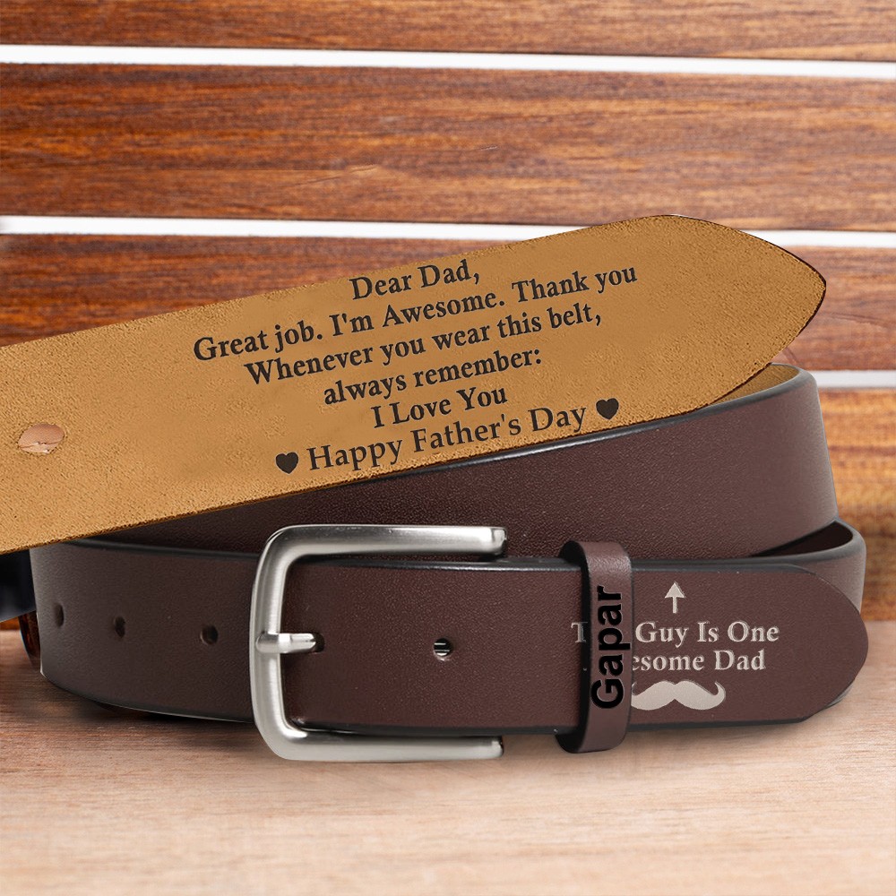 Personalised This Guy Is One Awesome Dad Engraved Leather Belt Father's Day Gifts