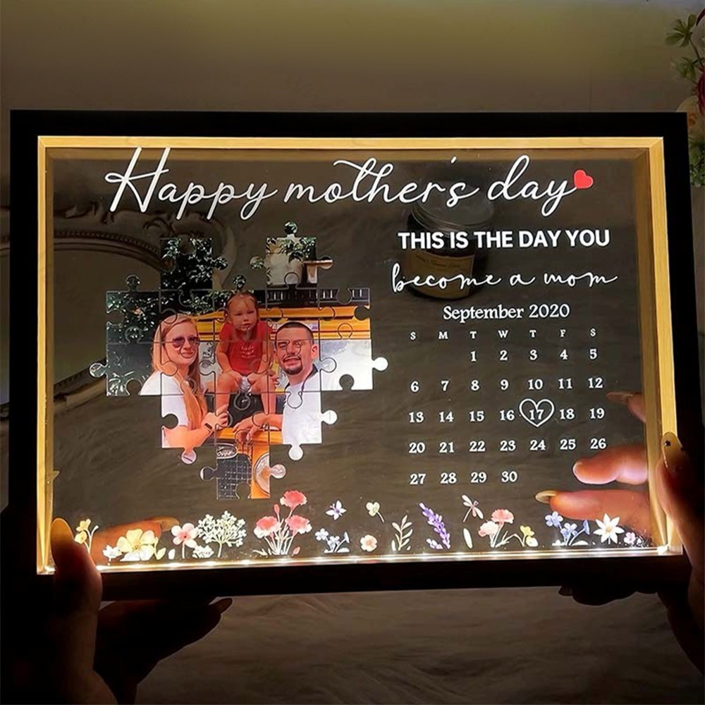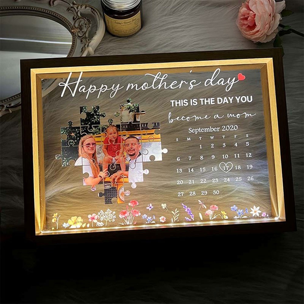 Personalised This Is The Day You Became A Mum Photo Night Light Frame Keepsake Gifts for Mum Mother's Day Gift