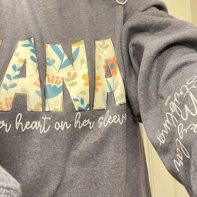 Personalised This Nana Wears Her Heart on Her Sleeve Sweatshirt Hoodie Mother's Day Gift