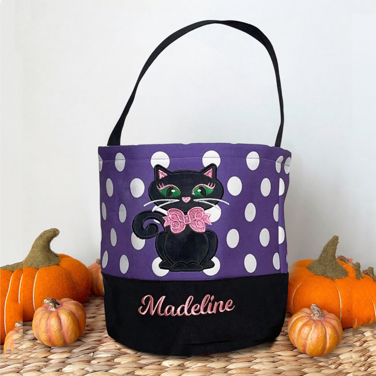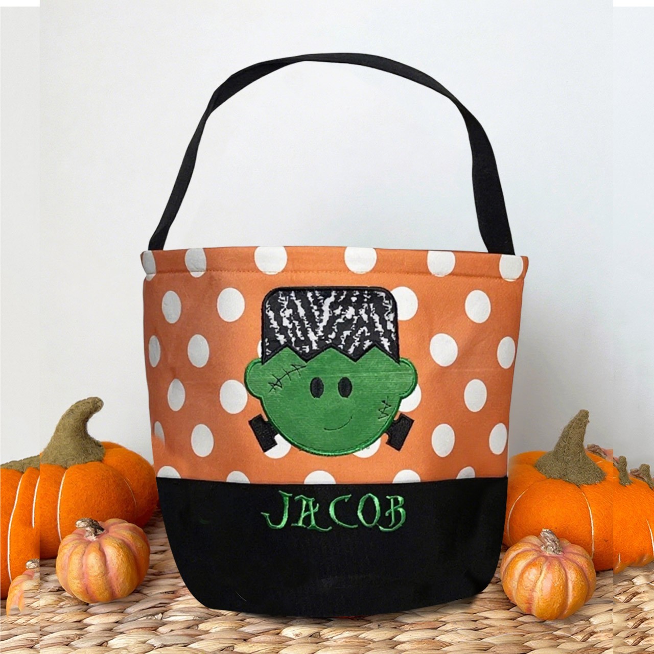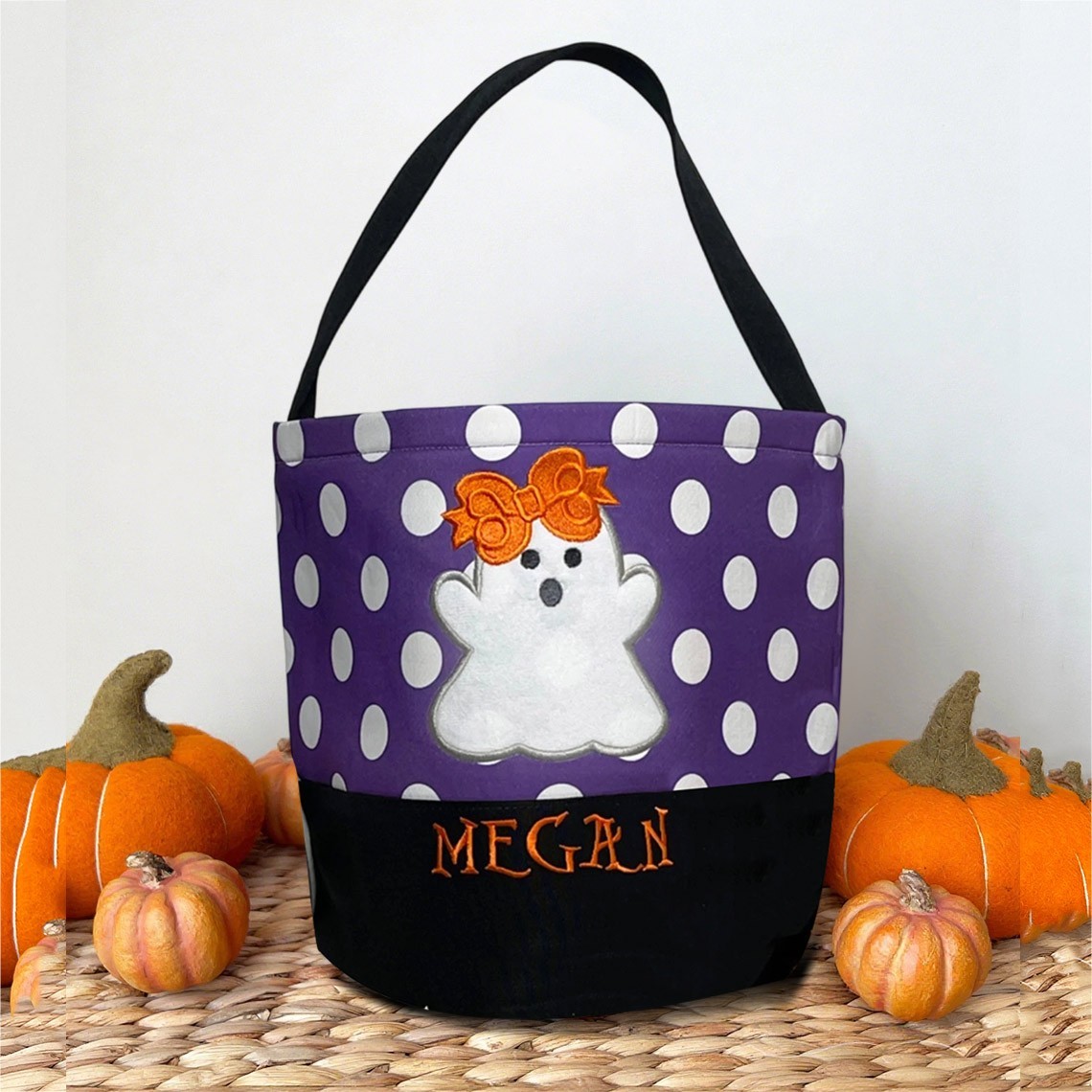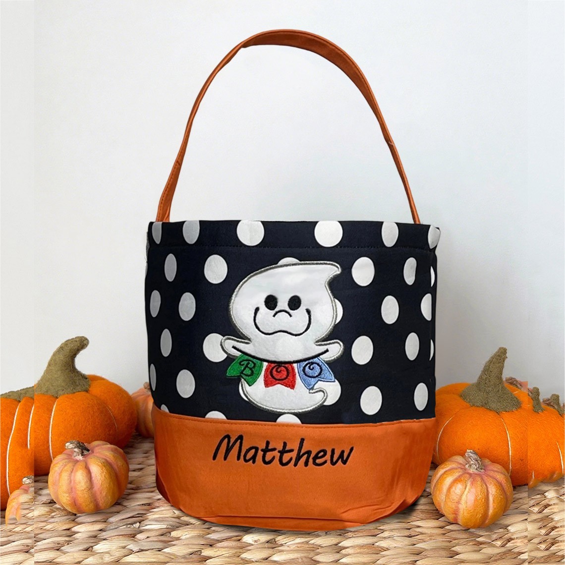 Personalised Trick or Treat Bucket with Embroidered Name Halloween Candy Bag Halloween Gift for Kids