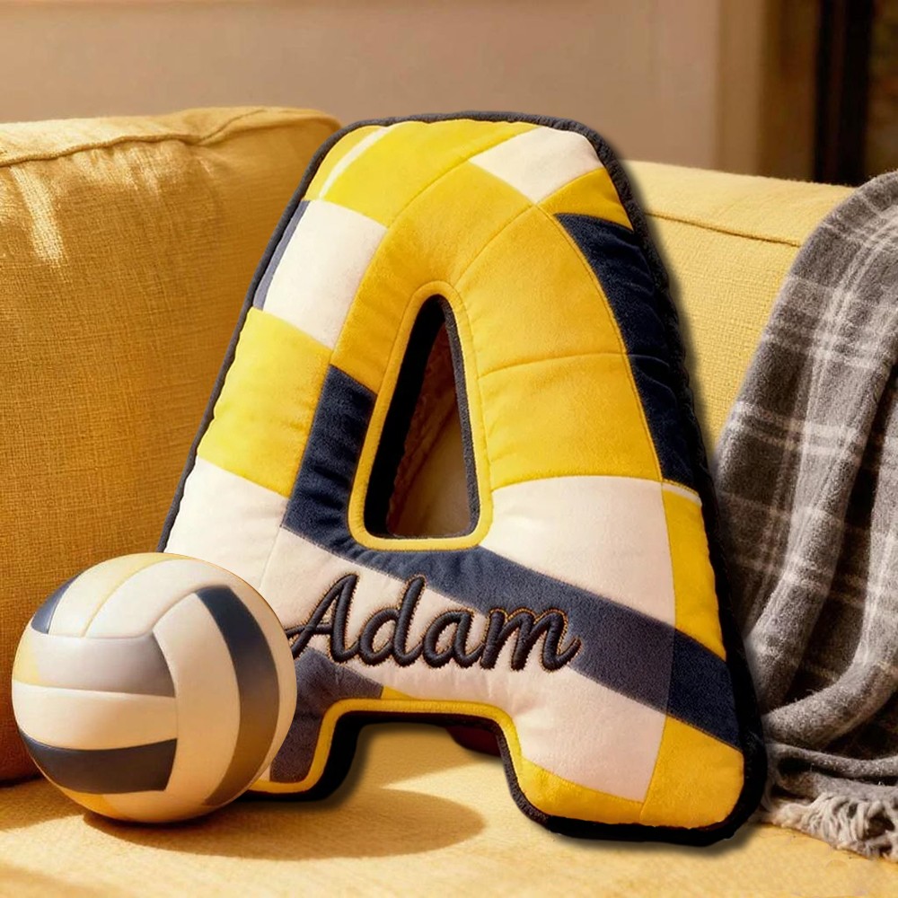 Personalised Volleyball Themed Letter Shaped Pillow with Custom Name Volleyball Fans Gifts Christmas Gift for Volleyball Lover