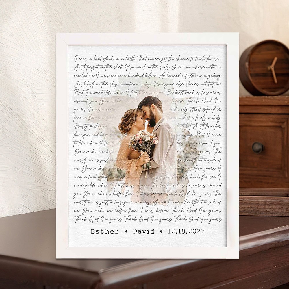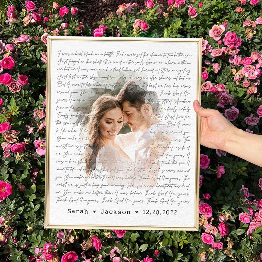 Personalised Wedding Song Lyrics Print Frame with Photo for Couple Anniversary Gift for Her Him