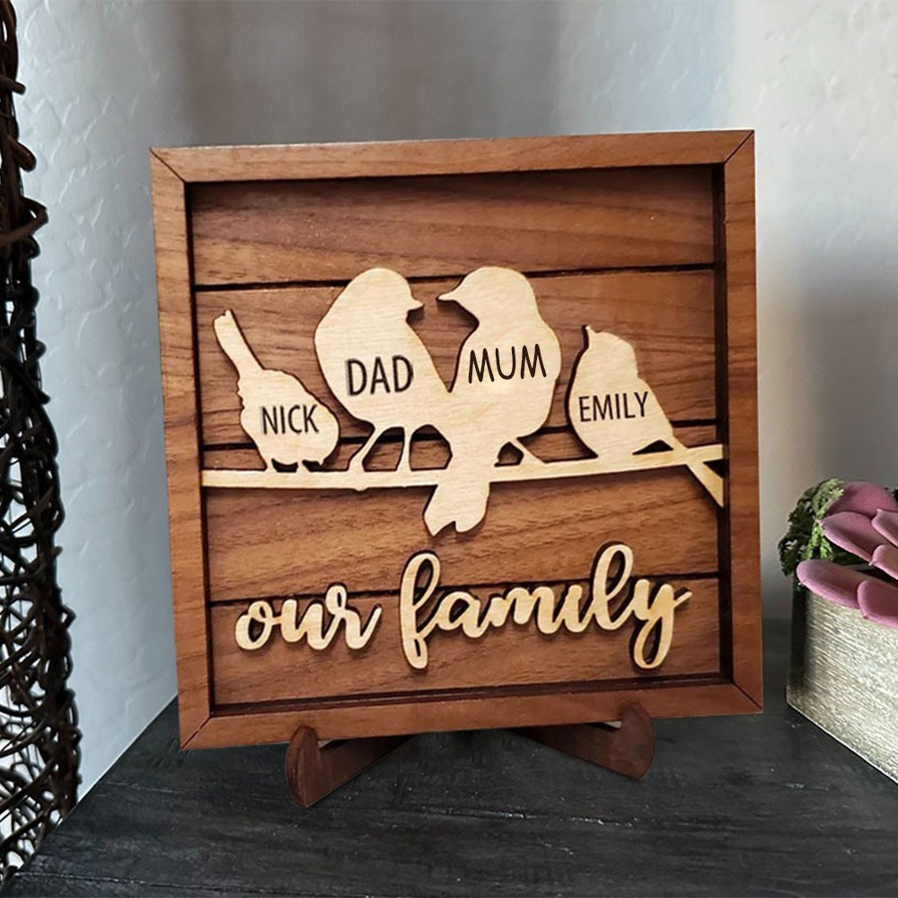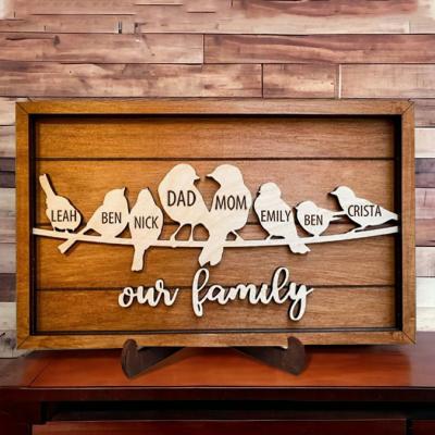 Personalised Wooden Birds Family Tree Frame Sign with Engraved Names Keepsake Gifts for Grandma Mum Mother's Day Gift
