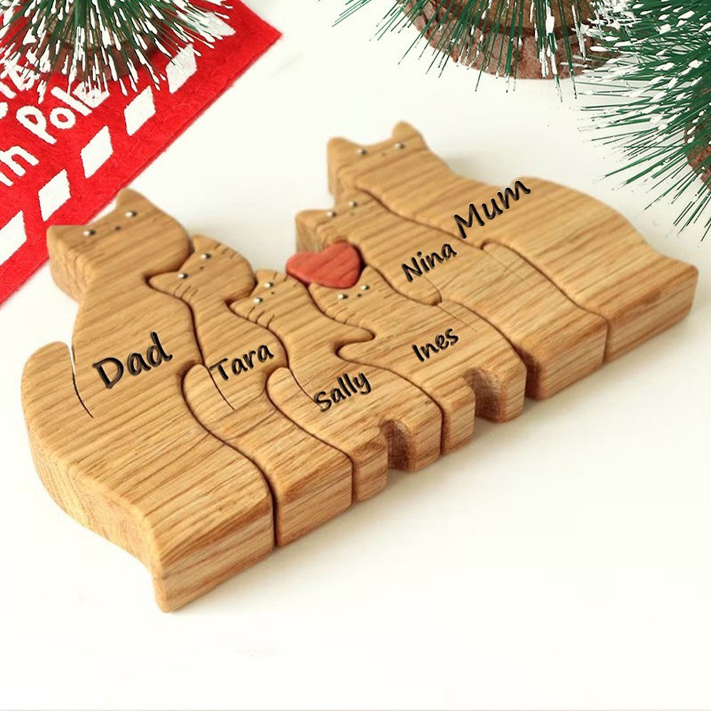 Personalised Wooden Cat Names Family Puzzle