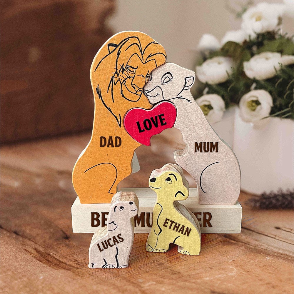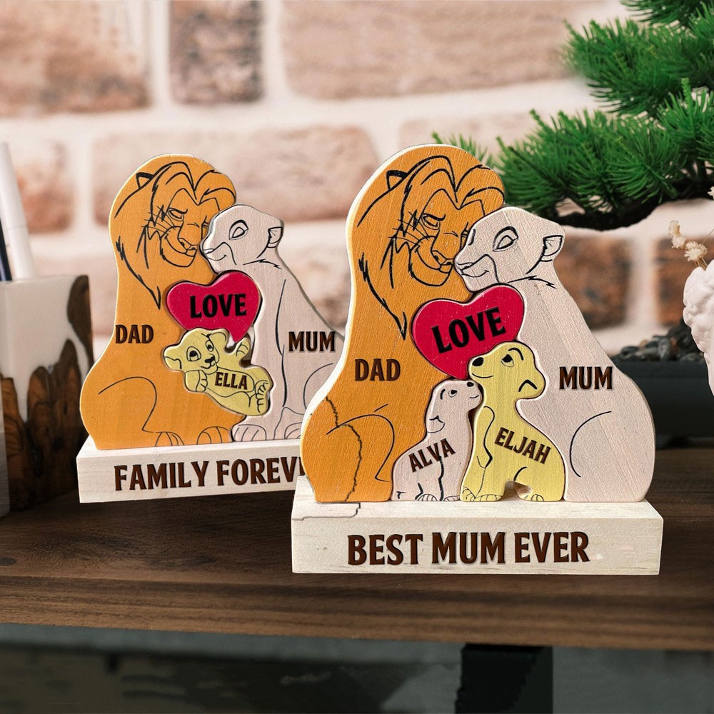 Personalised Wooden Lions Family Puzzle with Engraved Names Keepsake Gifts for Family Christmas Gift for Mum Dad