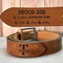 Personalised Proud Dad Of A Few Dumbass Kids Leather Belt with Engraved Names Father's Day Gift