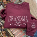 Custom Grandma Embroidered Sweatshirt with Kids Names and Bow on Sleeve Keepsake Gifts for Grandma Mum Mother's Day Gift