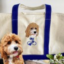 Personalised Dog Mum Tote Bag With Embroidered Pet Portrait and Name for Women Gifts for Dog Owners Pet Lover Gifts