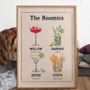 Personalised Roommates Drinks Art Print Frame with Names College Apartment Dorm Art Unique Gifts for Friends