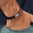 Personalised Mens Beaded Leather Bracelet with Kids Names for Him Gift for Dad Father's day Gift