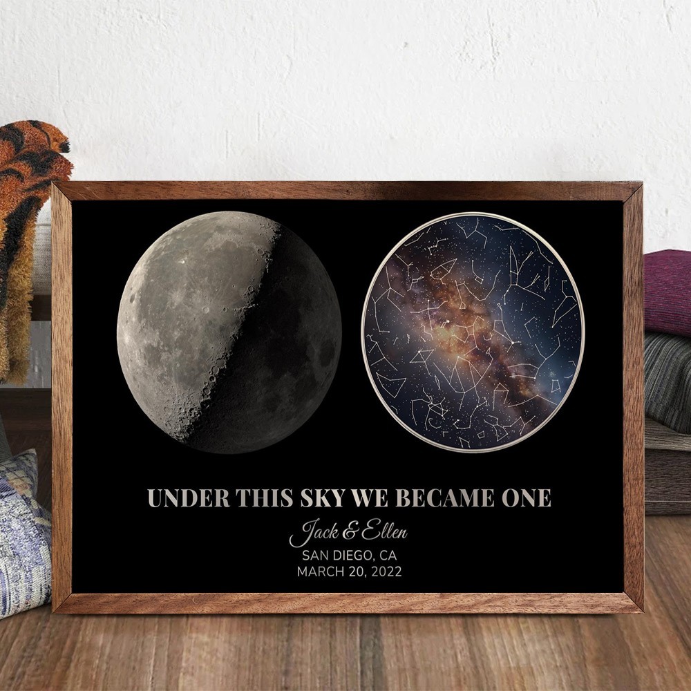 The Sky on Our Wedding Night Personalised Star Map Frame with Moon Phase Wedding Anniversary Gift Unique Gifts for Couple