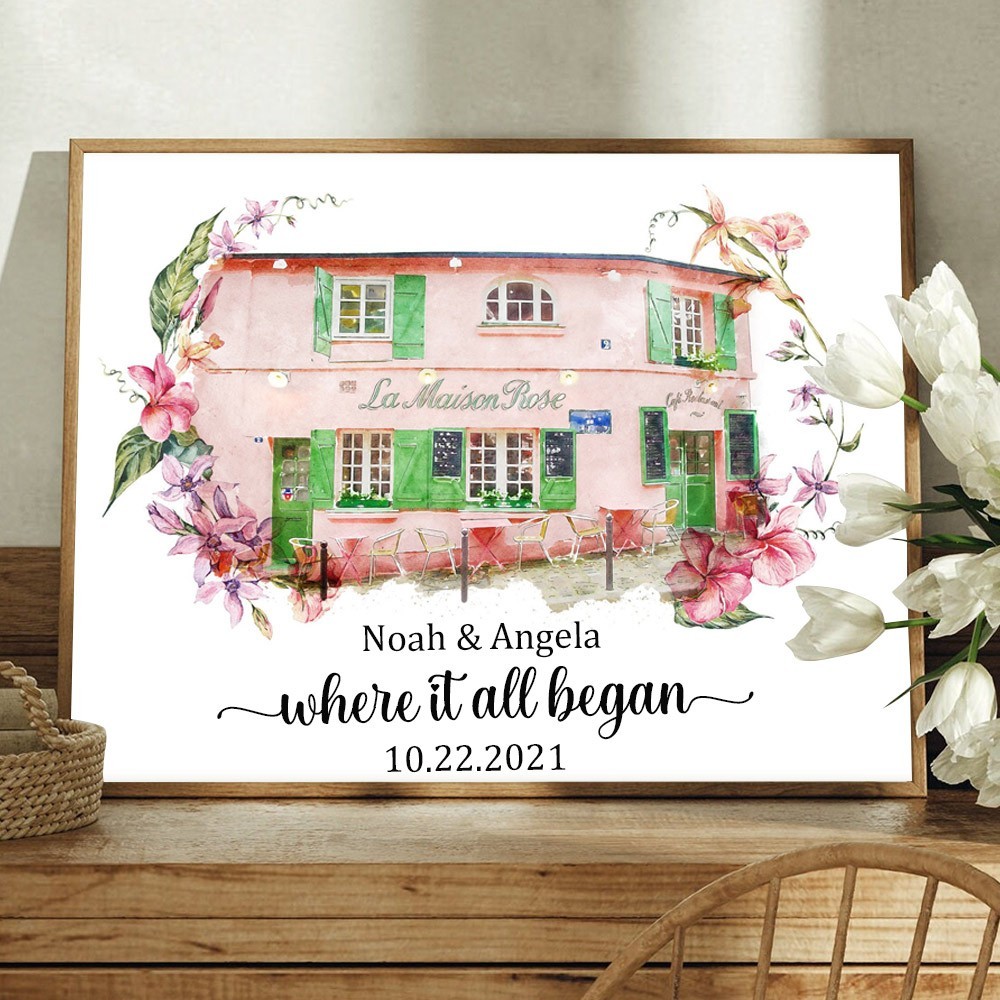 Where It All Began Custom Watercolor House Portrait From Photo Wedding Anniversary Gift for Husband Valentine's Day Gift for Couples
