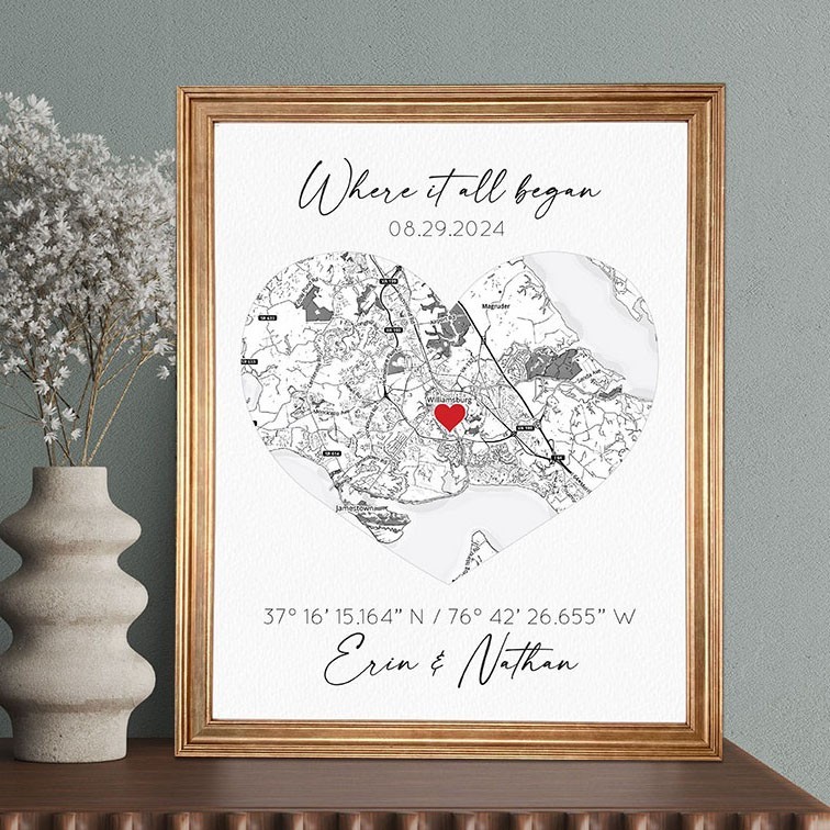 Where It All Began Map Personalised First Date Memory Map for Couples Anniversary Gift Ideas Valentine's Day Gifts