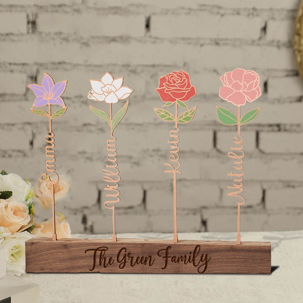 Wood Birth Flower Garden Custom Mum's Garden Sign with Kids Names Keepsake Gifts for Mum Christmas Gift