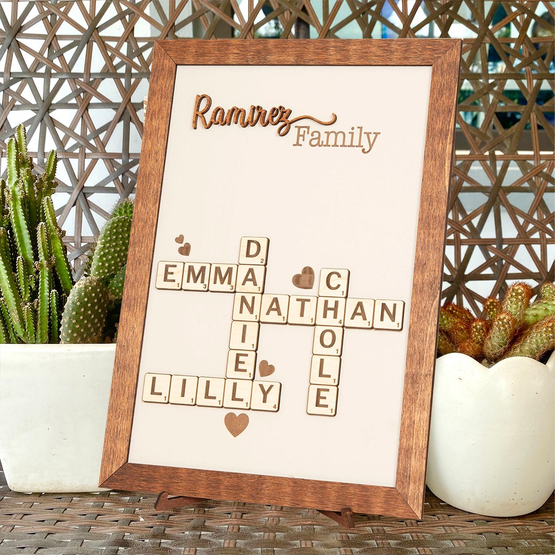 Wooden Family Name Crossword Scrabble Puzzle Sign Custom Family Keepsake Gifts Unique Gift for Mum Mother's Day Gift