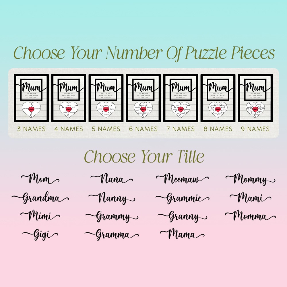 You Are The Piece That Holds Us Together Personalised Mum Sign Custom Wooden Puzzle Pieces With Kids Names Mother's Day Gifts For Mum Grandma